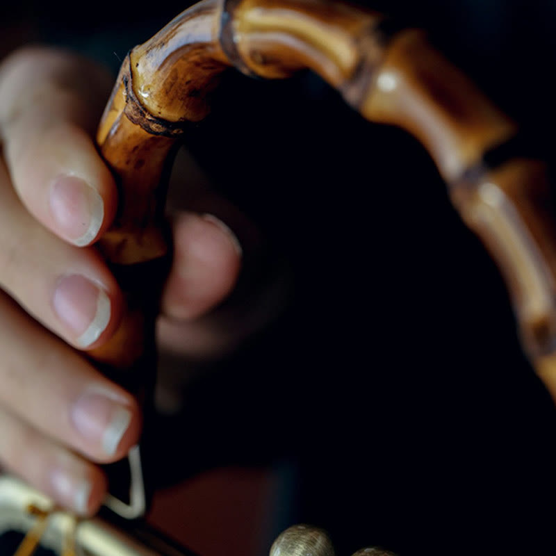 - Material: Polyester, Cotton, Metal, Bamboo Handle, Tassels Accessories; Lining: Cotton