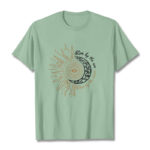 - DESIGN INSPIRATION: This T-shirt design features the sun and moon alongside the phrase “Live by the sun, love by the moon,” symbolizing a balanced life guided by energy and action during the day and by love and intuition at night. It reflects harmony between vitality and emotion, embracing the natural rhythms of life.