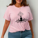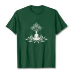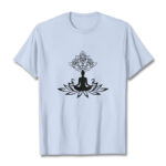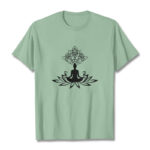 - DESIGN INSPIRATION: This T-shirt design features Buddha seated on a lotus flower, symbolizing purity, spiritual enlightenment, and transcendence. The lotus represents rising above worldly impurities—growing from muddy water yet remaining unstained—while Buddha’s lotus seat signifies his divine wisdom and the attainment of a pure, enlightened state.
