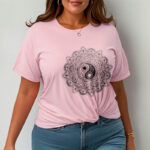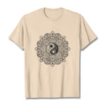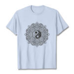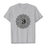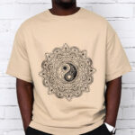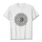 - DESIGN INSPIRATION: This T-shirt design features a mandala with the Yin-Yang symbol at its center. The intricate patterns surrounding the symbol represent balance, harmony, and the interconnectedness of opposites. The design embodies the concept of duality in life, where light and dark, positive and negative forces exist in harmony.