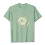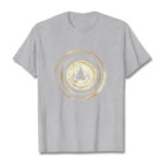 - DESIGN INSPIRATION: This T-shirt featuring a Buddha seated on a lotus flower with a halo symbolizes enlightenment, spiritual awakening, and purity. The lotus represents resilience and the journey of rising above challenges, while the halo signifies divine light and wisdom, encouraging wearers to embrace their inner strength and seek tranquility in their lives.