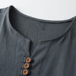 Solid Color V Collar Cotton Shirt offers a blend of comfort and practicality with its soft cotton fabric. The three-button design adds a touch of uniqueness, while the V collar enhances breathability. This shirt serves as an ideal choice for individuals seeking versatility and relaxation in their wardrobe, promoting a sense of ease and tranquility, perfect for various settings and activities.💕