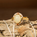 - Material: Hetain Jade, Gold Plated Copper, Zirconia