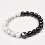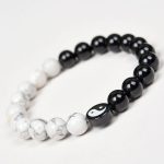Obsidian White Turquoise Yinyang Bracelet features beads evenly divided between natural obsidian and white turquoise, centered with a Yinyang charm. Obsidian provides grounding and protection, while white turquoise promotes balance and clarity. The Yinyang symbol represents harmony and duality, creating a meaningful bracelet that fosters spiritual growth, emotional stability, and strength, making it a powerful talisman for personal peace and equilibrium.💕