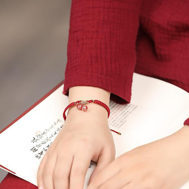 Buddha Stones Natural Strawberry Quartz Amethyst Green Phantom Bead Positive Bracelet