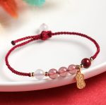 - Material: Strawberry Quartz, Hetian Jade, White Agate, Cinnabar, Rope