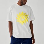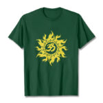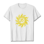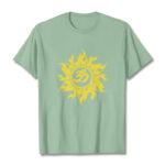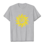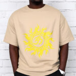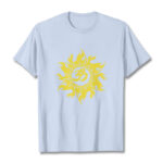 - DESIGN INSPIRATION: This T-shirt design features the OM symbol and a gold sun, representing the cosmic sound of creation and universal energy. The OM symbolizes the origin and essence of the universe, spiritual awakening, and the interconnectedness of all existence, while the gold sun signifies life, vitality, and enlightenment. Together, they convey a powerful message of harmony, spiritual illumination, and the source of all life.