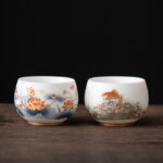 Phoenix Dragon Lotus Deer Ancient Building Koi Fish Ceramic Teacup Kung Fu Tea Cups
