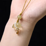 The Chinese character Fu (福) means happiness, blessing, good fortune, and good luck. People across China have the tradition to paste this character on their doors or windows during the Spring Festival to greet the Chinese Lunar New Year. They believe doing this will bring good fortune. It is written on diagonal square red paper and the character is usually pasted upside-down. Since the word for “arrive” in Chinese sounds the same as the word for “upside-down”, pasting the character upside-down signifies that “good fortune has arrived”. Pasting the character upside-down on a door or doorpost thus translates into a wish for prosperity to descend upon a dwelling. The Fu character can also be used in jewelry to represent the desire that one’s good luck will be expansive.