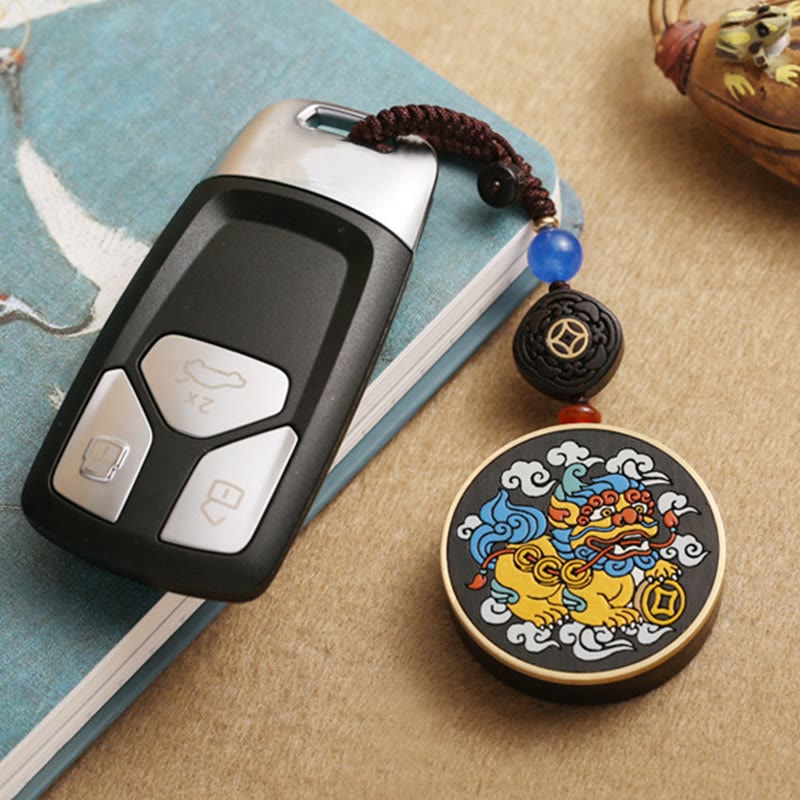 Be the first to review “Buddha Stones PiXiu Copper Coin Ebony Wood Luck Attract Wealth Key Chain Decoration”