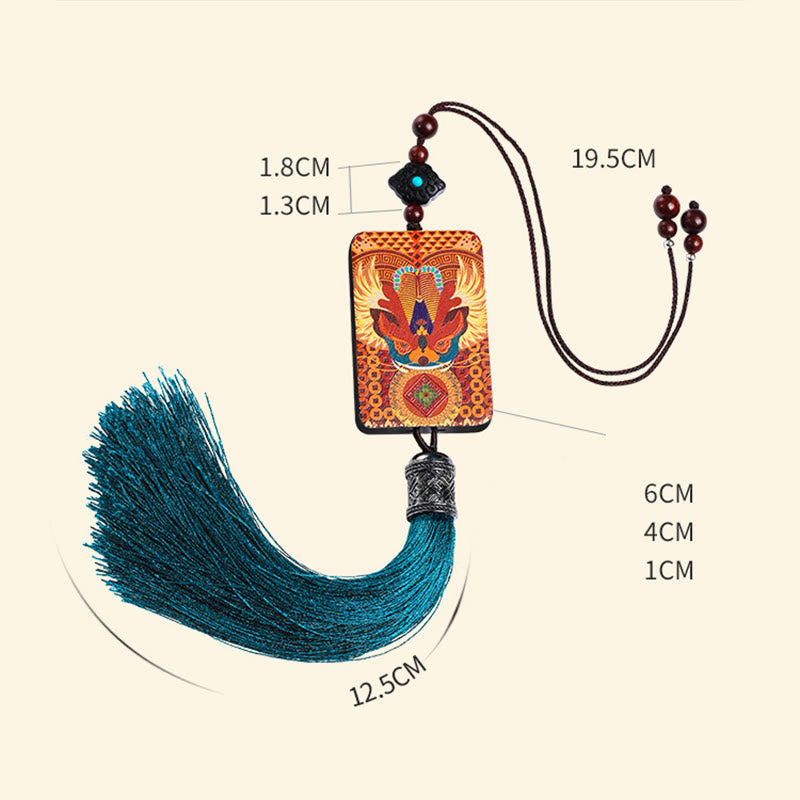 - Material: Ebony Wood, Sandalwood, Tassel, Alloy