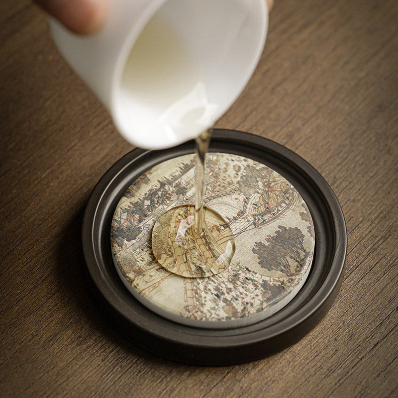 Immerse in the serenity of tea culture with our Plum Blossom Peach Heart Sutra Ceramic cup mat. Infused with the wisdom of the Heart Sutra and adorned with nature-inspired motifs like loquat and magnolia, this coaster transcends mere functionality. It serves as a daily reminder of tranquility and mindfulness, creating a harmonious atmosphere for your tea moments.💕