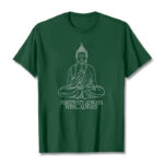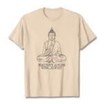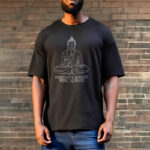 “Our design concept for this T-shirt blends traditional Buddhist elements with contemporary trends, aiming to inspire happiness and spiritual strength in those who wear it. Our goal is to create a T-shirt that not only honors Buddhist philosophy but also serves as a wearable piece of art that brings joy and a sense of connection to our community.”