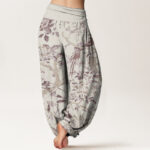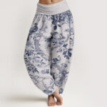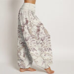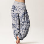 - Design: These harem pants feature a Birds, Branches, Flowers print inspired by nature. The high-elastic pleated waistband offers a slimming, comfortable fit, while the loose leg design provides freedom of movement. The elastic cuffs at the ankles give a stylish look.