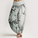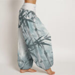 - Design: The harem pants feature a delicate pattern of bamboo leaves and a dragonfly, symbolizing resilience, flexibility, and harmony with nature. This design evokes a sense of peaceful vitality and graceful balance.