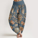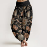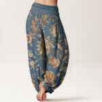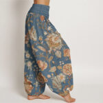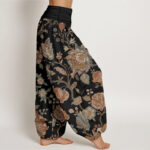 - Design: The harem pants featuring blooming flowers and flower buds symbolize growth, beauty, and the promise of new beginnings, reflecting the natural cycle of life and renewal. This design evokes a sense of vibrancy and optimism, making it an ideal choice for those who appreciate floral motifs that celebrate life’s unfolding journey.