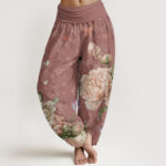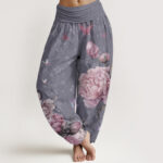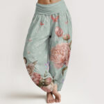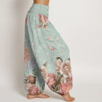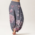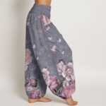 - Design: The harem pants feature delicate peony flower and butterfly patterns. The large, detailed blossoms, add a touch of elegance and complexity to the design,while the butterflies symbolize freedom, transformation, and a happy life. These elements make the pants not only fashionable but also full of meaning.