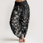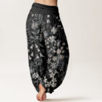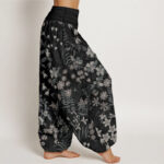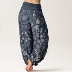 - Design: These harem pants feature a botanical floral print inspired by nature. The high-elastic pleated waistband offers a slimming, comfortable fit, while the loose leg design provides freedom of movement. The elastic cuffs at the ankles give a stylish look.