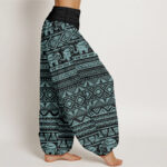 - Design: The harem pants feature elephants and geometric figures. The elephant appears solemn and majestic in the picture, symbolizing strength and wisdom; the geometric figures, with their simple lines and symmetry, add a sense of modernity and orderly beauty to the whole picture. These elements make the pants not only fashionable but also full of meaning.