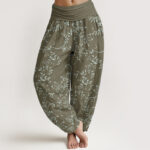 - Design: The harem pants featuring flowers and vine patterns symbolize growth, vitality, and a connection to nature, reflecting the beauty and resilience of floral motifs. This design evokes a sense of harmony and playfulness, making it an ideal choice for those who appreciate a vibrant and organic aesthetic in their wardrobe.