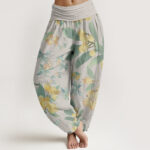Loquat Pattern Harem Pants feature vibrant yellow floral motifs that bring a lively touch to your day. Designed with a comfortable elastic waistband and a relaxed fit, they provide ease of movement and long-lasting comfort. Crafted from breathable fabric, these pants promote a sense of calm and balance, making them perfect for various occasions.💕