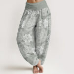 - Design: These women’s yoga harem pants showcase a stunning mandala flower pattern, perfect for adding a unique touch to your stylish collection.