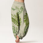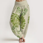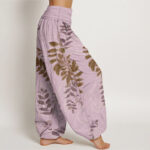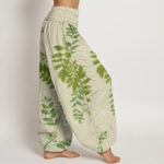- Design: These pants feature a beautiful botanical design, showcasing intricate leaf patterns that evoke a sense of nature and tranquility. The flowing silhouette enhances the organic feel, making them perfect for relaxed, stylish wear.