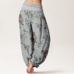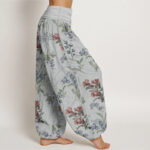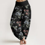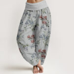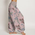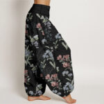 - Design: The harem pants, featuring red and blue flowers with green leaves, symbolize a vibrant blend of passion, tranquility, and growth, as red flowers represent energy and love, blue flowers embody calmness and loyalty, while green leaves signify harmony and vitality. The design combines contrasting colors to evoke a sense of dynamic balance and natural beauty.