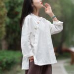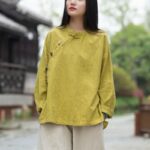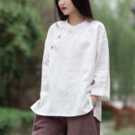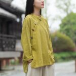 Ramie Linen blouse in Chinese Hanfu style offers a timeless design suited for comfort and ease. This elegant shirt top, made from breathable ramie linen, features a loose fit that allows for freedom of movement. Its traditional aesthetics encourage a peaceful mindset, ideal for everyday relaxation or cultural practices.💕
