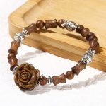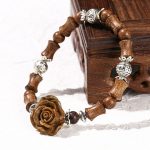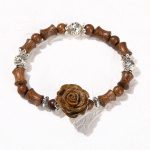 Sandalwood Bamboo Camellia Bracelet features sandalwood beads with a bamboo pattern and a central camellia charm carved from sandalwood. Sandalwood is known for its grounding and healing properties, while the camellia represents purity and love. The bamboo pattern symbolizes strength and flexibility, creating a harmonious bracelet that promotes emotional balance, spiritual growth, and a deep connection to inner peace.💕