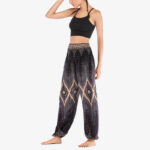 - PREMIUM MATERIAL: Super soft and lightweight Small Eye Peacock Feathers Pattern Harem Pants made with Thai rayon fabric. The pants is crafted from high-quality material; skin-friendly. Breathable, Relax and Comfortable, which will keep the body comfortable.