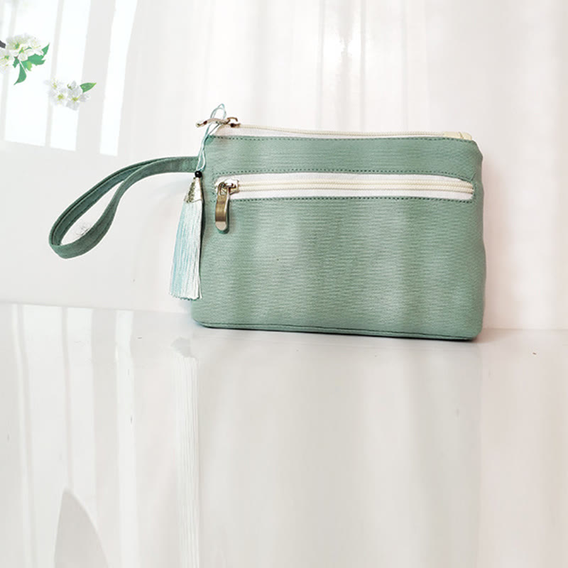 Small Flower Plum Cherry Crane wallet features intricate embroidery of plum blossoms, cherry blossoms, cranes, and peach blossoms on durable canvas. This wallet embodies traditional symbolism of beauty, longevity, and prosperity. Compact and practical, it’s perfect for carrying essentials while adding a touch of cultural elegance to your daily routine.💕