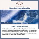 Sodalite (also known as Blue Vein Stone Crystal) can clear mental blocks and confusion. It encourages rational thinking and promotes intuitive perception and the ability to express emotions. It can calm the mind and can help with learning. It’s a gemstone of insight, harmony, and intuition that helps open the throat chakra.