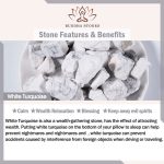 White Turquoise can relieve migraine and tracheal problems, it is also a wealth-gathering stone, has the effect of attracting wealth. Putting white turquoise on the bottom of your pillow to sleep can help prevent nightmares and nightmares and , white turquoise can prevent accidents caused by interference from foreign objects when driving or traveling.