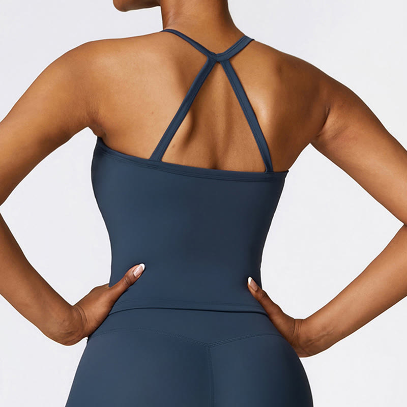Buddha Stones Solid Color Crop Tank Top High Waist Shorts Sports Fitness Gym Yoga Outfits 2-Piece Outfit BS Dark Blue Top US8/10/XL