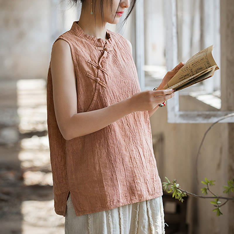 Buddha Stones Summer Tie-dye Frog-Button Ramie Cotton Sleeveless Women’s Vest