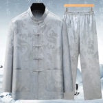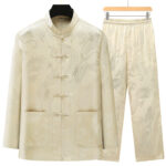 Tang Suit Men Hanfu set features a Chinese Dragon design, symbolizing power and wisdom. This traditional Kung Fu shirt and long-sleeved coat with pants reflect ancient Chinese heritage. Perfect for martial arts practice or cultural events, this set embodies the spirit of traditional craftsmanship. Wearing this attire brings a sense of connection to Chinese history and cultural pride.💕