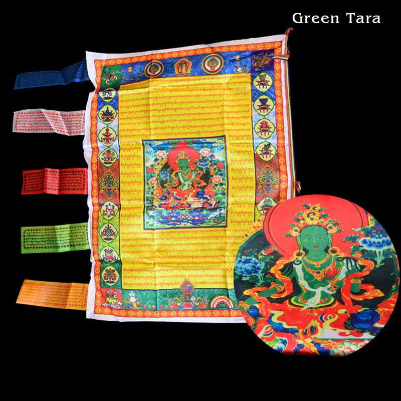 • Each flag features a large variety of prayers surrounding the center image of lungta, a Windhorse. Lungta is also the Tibetan word for ‘prayer flag’. Circulates a feeling of Harmony and increases the Spiritual Atmosphere. It Brings Spiritual Vibration carried by the wind across the house.