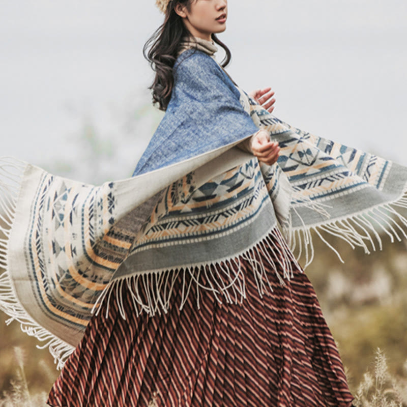 Rhombus Pattern Tassels Tibetan Shawl features a geometric rhombus design with decorative tassels, crafted from soft and durable fabric. Perfect for fall and winter, this shawl offers warmth and comfort. Its intricate patterns reflect Tibetan cultural heritage, making it a meaningful accessory for travel or daily use. This shawl embodies positivity and balance, ideal for colder days and cherished moments.💕