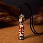 Dzi bead (Tib. གཟི།; pronounced “zee”; alternative spelling: gzi) is a type of stone bead of uncertain origin worn as part of a necklace and sometimes as a bracelet. Dzi beads are precious jewelry from Tibetan culture which is generally prized as protective amulets,these beads are believed to attract local protectors, dharmapalas or deities or maybe beneficial ghosts, ancestors or even bodhisattvas. Because of this, dzi beads are always treated with respect in Tibetan culture. Nine-Eye Dzi Bead is the symbol of The Nine Planets, It includes the activity of the Universe and the wisdom of the humanity. Nine-eyed beads is the most popular of all Dzis, brings all kinds of luck and blessings; protection, good health, purify negative energy expand intelligence and wisdom.It helps the investors with the successful development of new ideas in rolling in wealth.