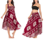 Two Style Wear Bohemian Summer Elephant skirt dress features a unique lace-up design for versatile styling. This piece can be worn as a skirt or a dress, adorned with intricate elephant lines print. Crafted from soft, breathable fabric, it ensures both comfort and elegance. Ideal for casual summer gatherings, this skirt dress embodies bohemian charm and adaptability.💕