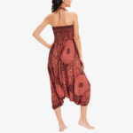 - Two Style Wear: This versatile outfit doubles as a low-cut harem pants or a strapless bandeau jumpsuit. In a way, you get 2 outfits for the price of one! The strings are on the inside of the waist, which means they can be conveniently hidden if desired. When pulled up, the strings can be put on the neck loop, but it stays up well even without them. The pants have leg elastics and a high waist elastic, both of which are very flexible and feel good against the skin.