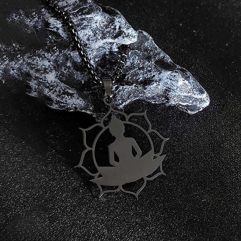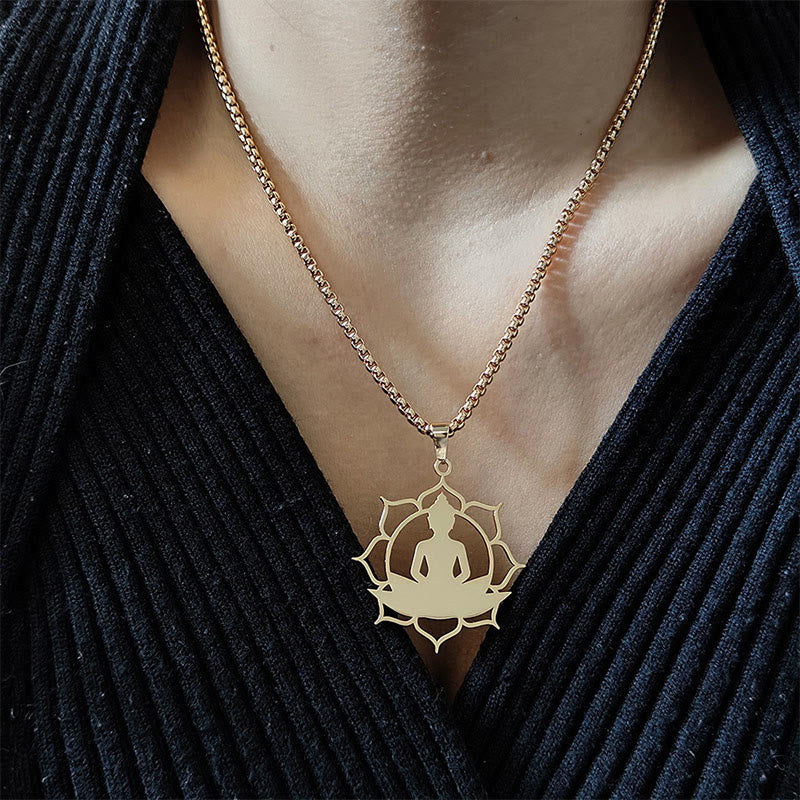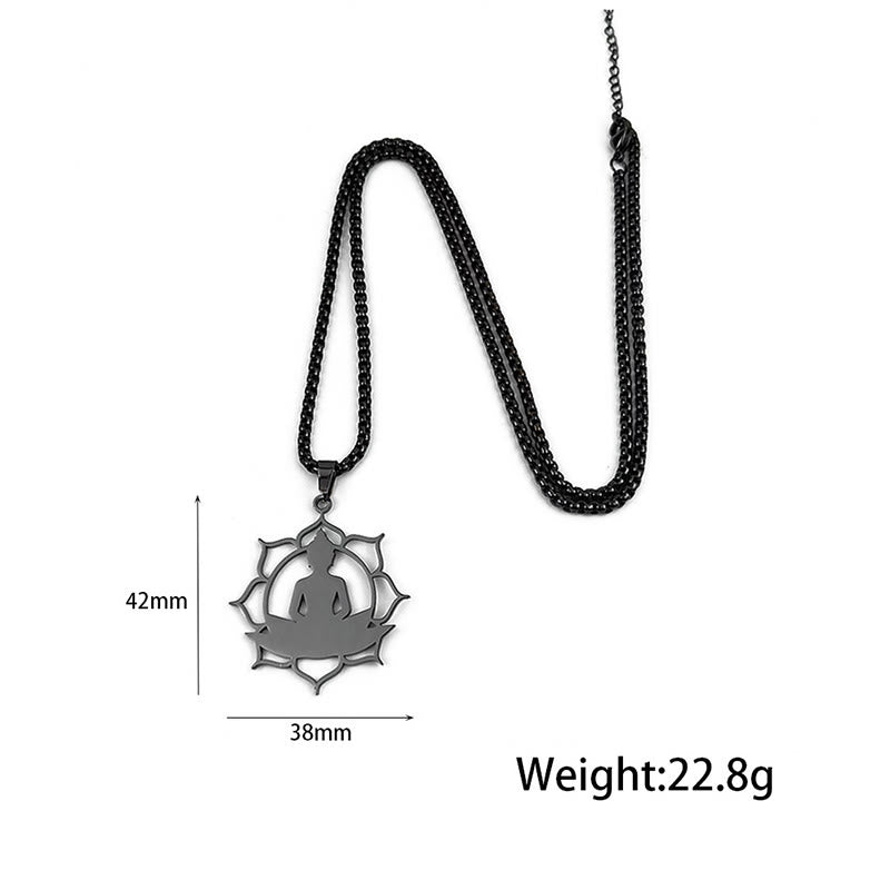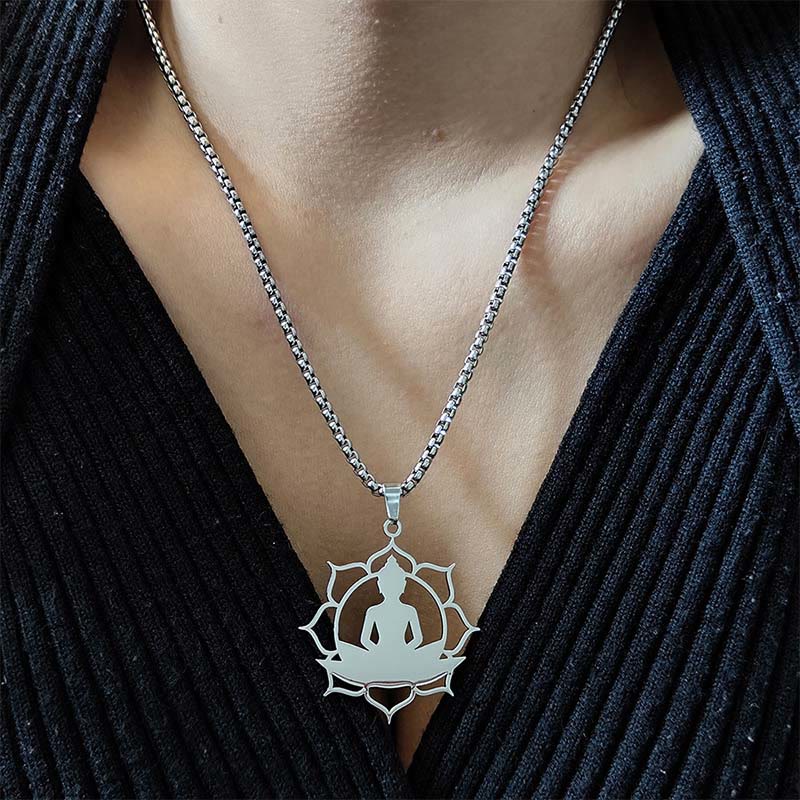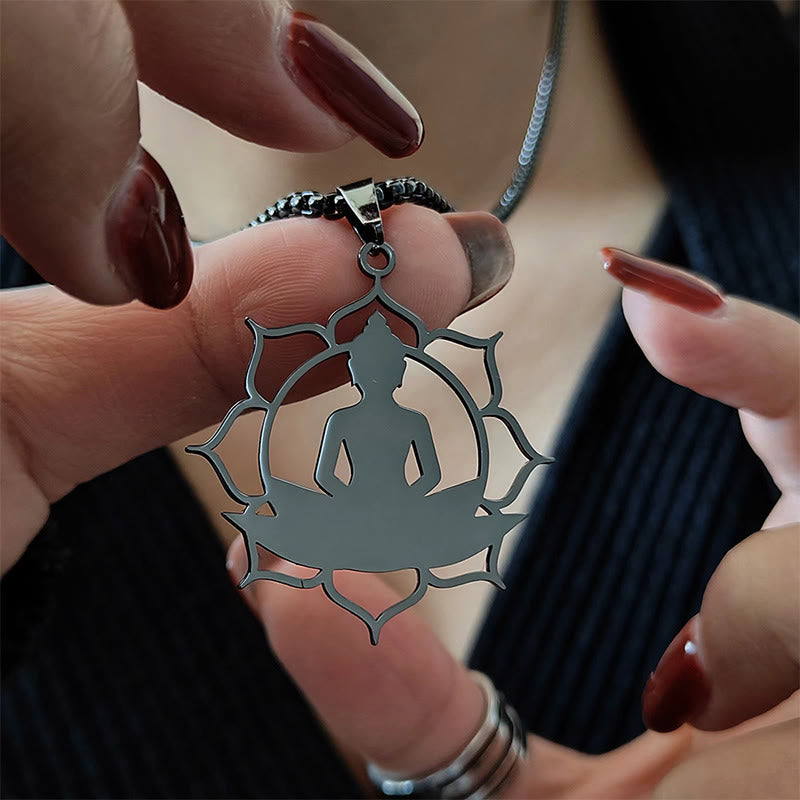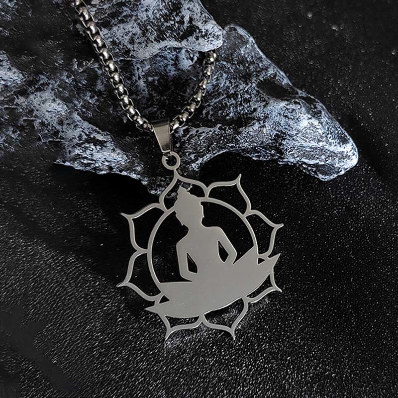 Buddha Stones Vintage Lotus Sitting Buddha Design Stainless Steel Enlightenment Necklace Pendant