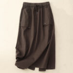 Be the first to review “Buddha Stones Vintage Plain Drawstring Button Design Slide Slite Women’s Cotton Linen 7-8 Length Skirt With Pockets”