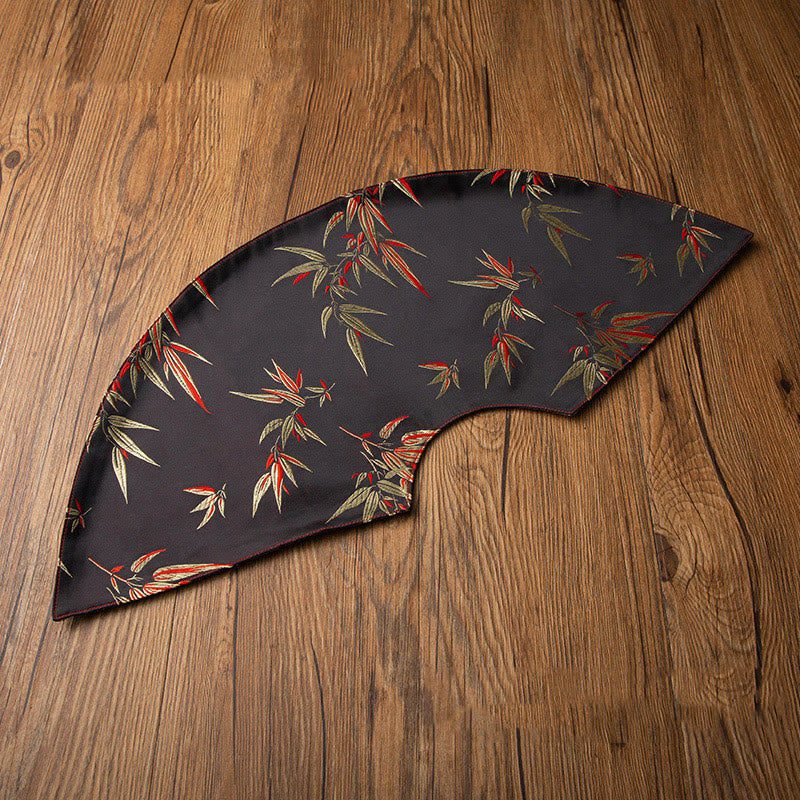 Buddha Stones Vintage Sea Wave Bamboo Plum Blossom Embroidered Cup Mat Pad Tea Cup Coaster Kung Fu Tea Mat