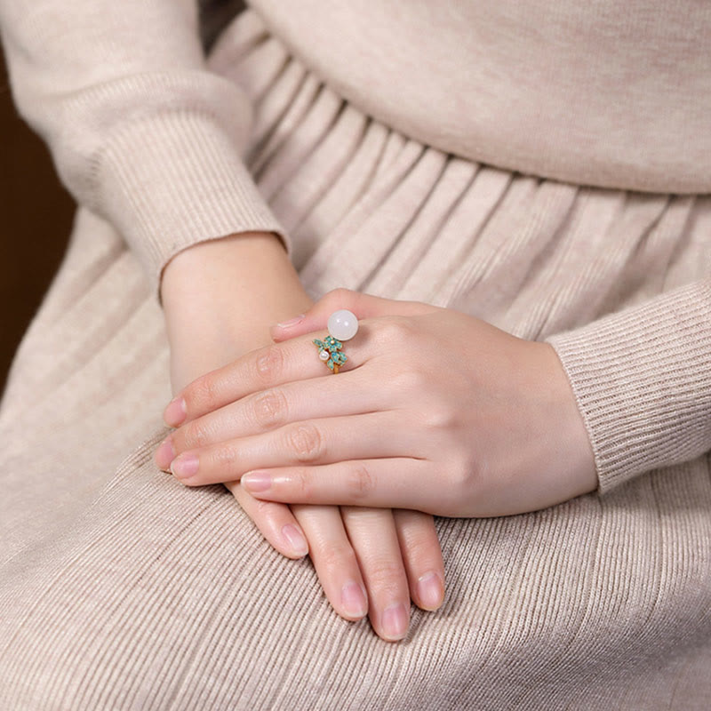 - Material: White Jade, Pearl, 925 Sterling Silver Plated Gold