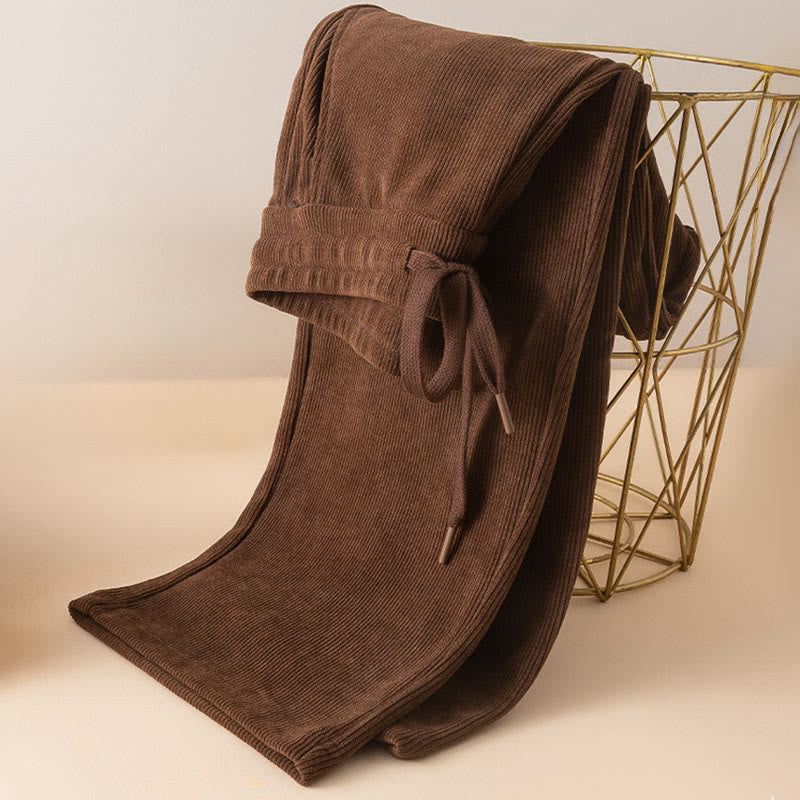 Buddha Stones Women’s Fall Pure Color Wide Leg Cotton Pants With Pockets