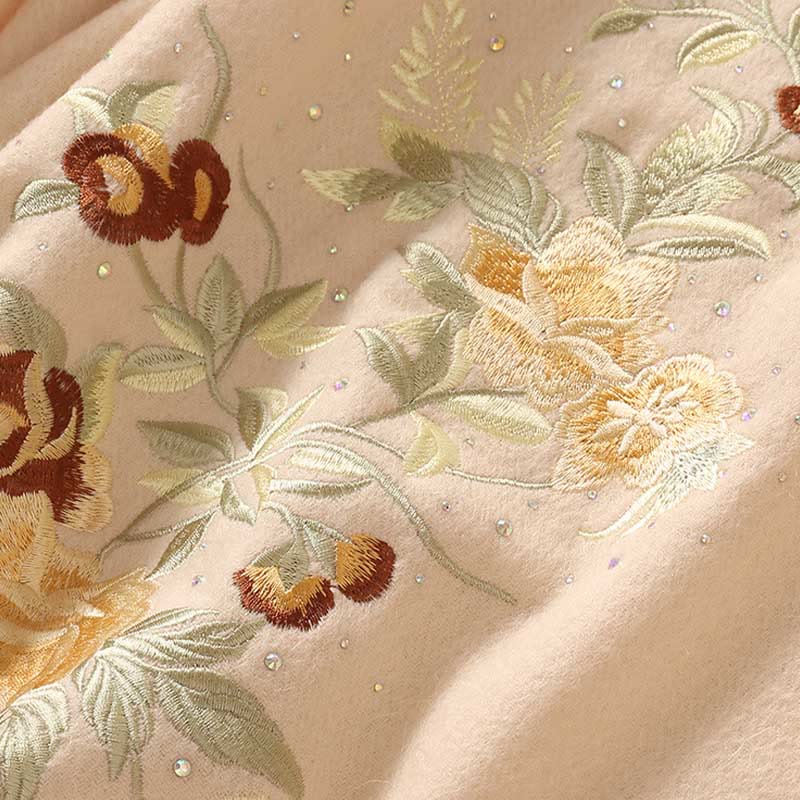Buddha Stones Wool Shawl Red Flower Silver Leaves Embroidery Tassel Winter Cozy Travel Scarf Wrap Shawl BS PeachPuff 200*60cm