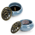 - 【Two-in-one incense burner】Made of porcelain with a beautiful metal lid for inserting cones/rolling incense. The incense burner measures approximately 4 inches in diameter by 2.9 inches high. This product has only one incense burner, not including accessories such as incense holder and incense.