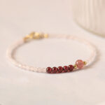 A gift that makes people emotionally calm and lucky: This item is handmade with Rose Quartz, Garnet, Strawberry Quartz, Copper Alloy.